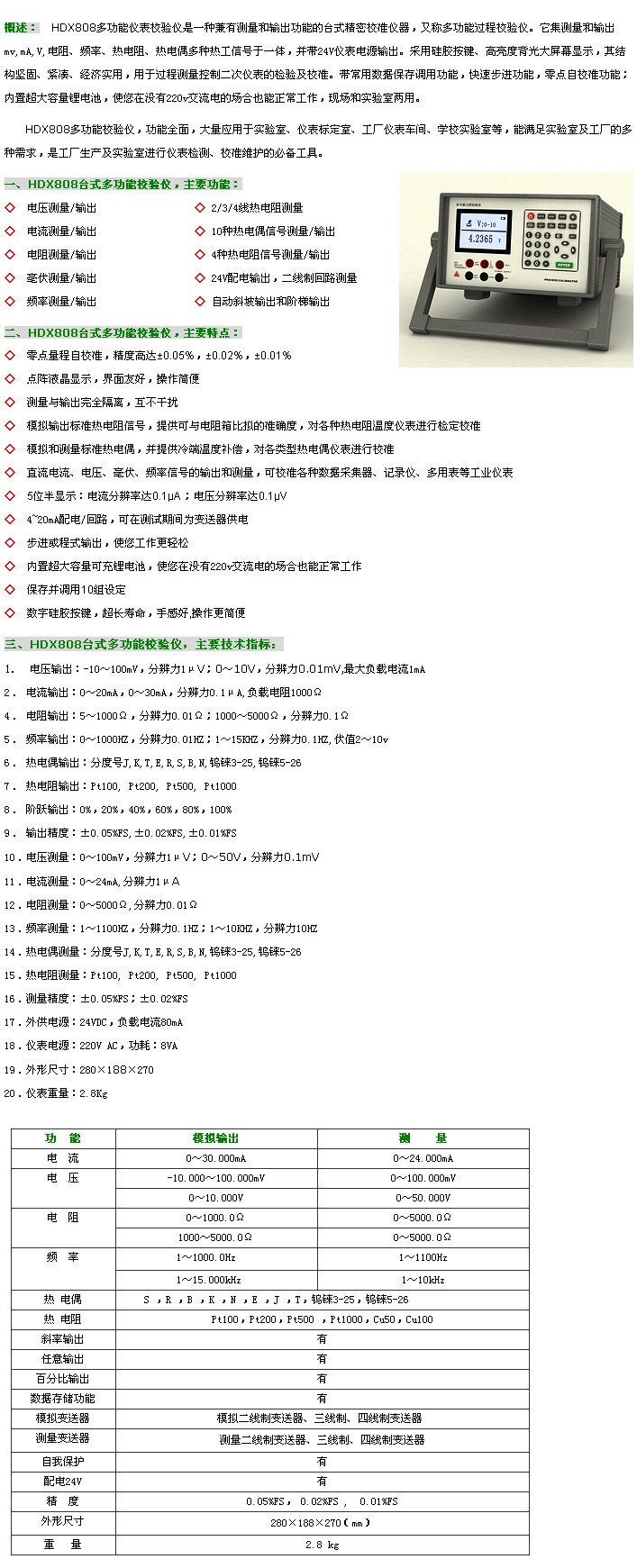 HDX808,臺式多功能校驗儀