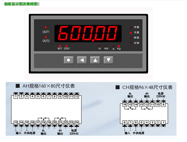 源,帶清零、報警、峰值保持功能,具有凈重、毛重顯示,峰值、谷值顯示。大量應(yīng)用于工業(yè)動化測量控制系統(tǒng)中。