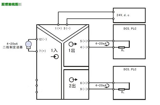 HD213一入二出隔離配電器與各種二線制4-20mA溫度變送器、流量變送器、壓力變送器、液位變送器等配套,完成取回參數(shù)信號、隔離轉(zhuǎn)換輸出的工作。隔離輸出的信號可接入數(shù)顯控制儀、PLC、變頻器等設(shè)備,并對終端接收設(shè)備起保護作用。該變送器采用了最先進的數(shù)字化技術(shù),具備了傳統(tǒng)模擬儀表所不具備的多項先進性能,即使在大功率變頻控制系統(tǒng)中依然能夠可靠應(yīng)用;同時,數(shù)字化技術(shù)的應(yīng)用有效提高了隔離轉(zhuǎn)換精度;內(nèi)部采用數(shù)字化調(diào)校、無需零點及滿度調(diào)整、自動動態(tài)零點校準(zhǔn)、溫度漂移自動補償?shù)戎T多先進技術(shù)