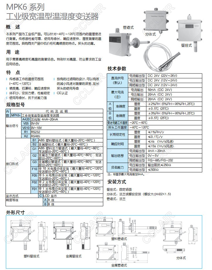 MPK6-A420,MPK6-V05,MPK6-V010,MPK6-R1,MPK6-R2,MPK6,溫濕度變送器
