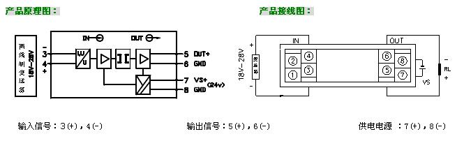 (2)選型舉例:HD03-14表示輸入二線制4~20mA,隔離輸出4~20mA,供電24V