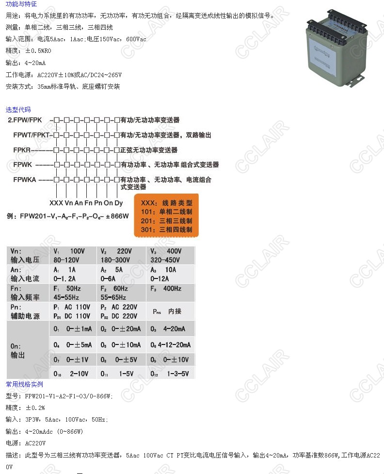 FPW101-V1-A2-F1-P2-O3,FPW201-V1-A2-F1-P2-O3,FPW301-V1-A2-F1-P2-O3,FPW,功率變送器