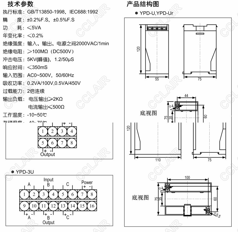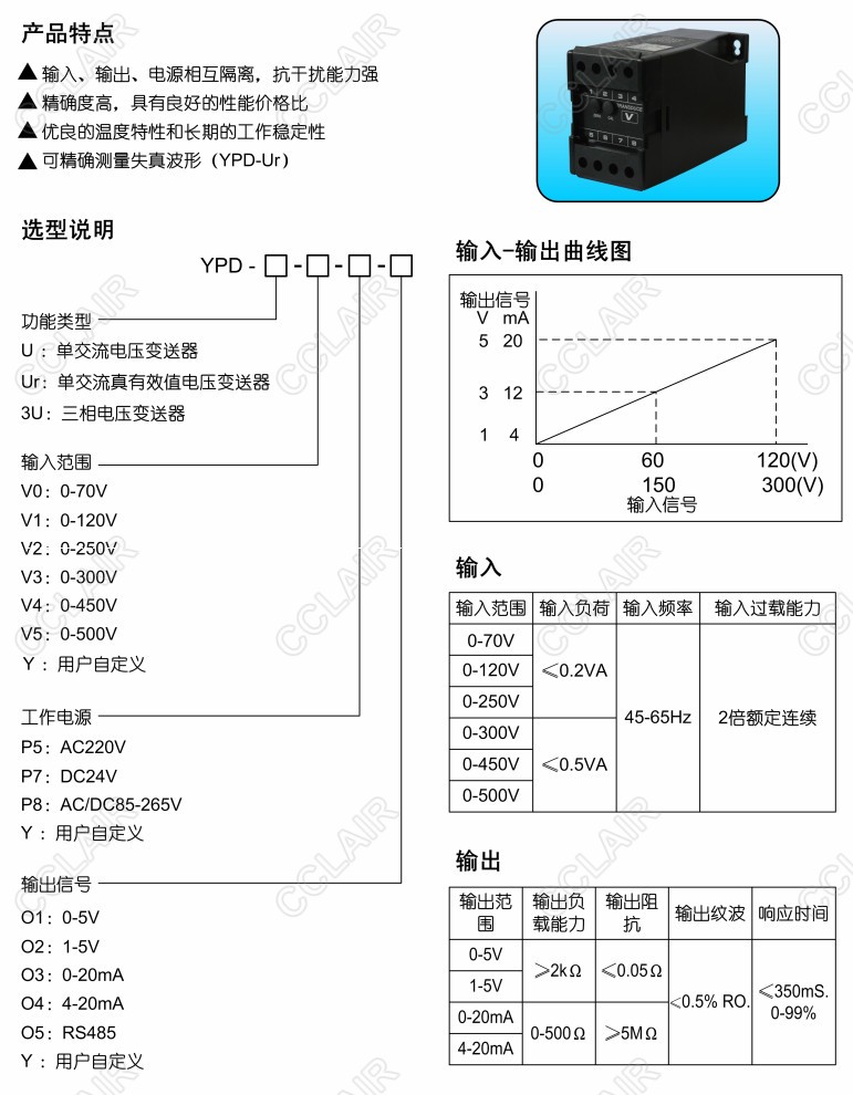 YPD-U-V0-P5-O1,YPD-U-V1-P5-O4,YPD-Ur-V0-P7-O1,YPD-U,YPD-Ur,YPD-3U,電壓變送器