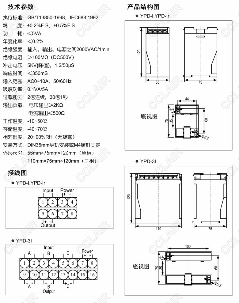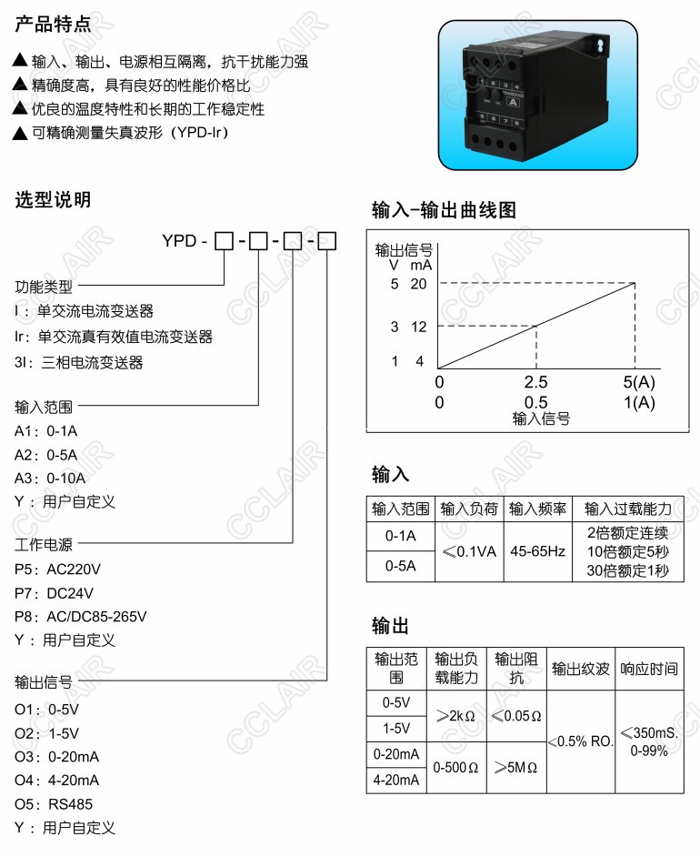 YPD-I-A2-P5-O4,YPD-Ir-A1-P8-O3,YPD-3I-A3-P8-O5,YPD-I,YPD-IR,YPD-3I,交流電流變送器