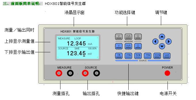 HDX801智能信號發(fā)生器,一機多用(電壓、電流、mV、電阻),兼有輸出和測量功能;各項功能均設(shè)計了保護電路,有效避免誤操作對儀器的損害,可靠耐用;大量應(yīng)用于工廠實驗室、儀表標(biāo)定校驗室、學(xué)校實驗室等,能滿足實驗室及工廠的多種需求,是儀表校驗、檢測維護的必備工具。具有連續(xù)輸出、階躍快捷輸出、常用數(shù)據(jù)存儲輸出、外部開關(guān)控制輸出功能,分辨率高、精度高、速度快、信號穩(wěn),有效提高實際生產(chǎn)的工作效率,實用方便。