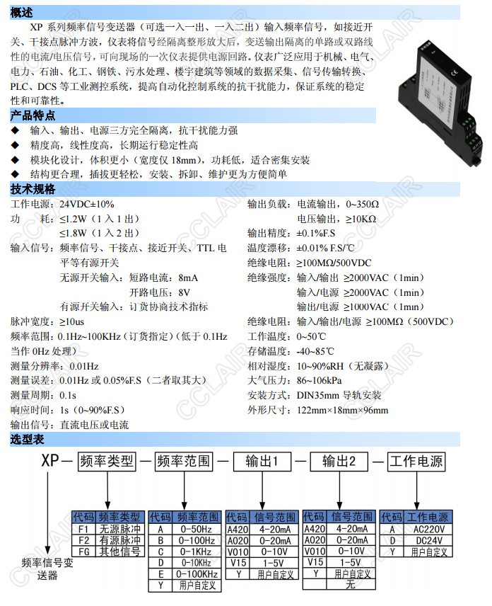 XP-F1-A-A420-A,XP-F2-C-A420-D,XP-F1-Y-V15-D,XP-F1-E-V15-Y,XP,頻率信號(hào)變送器