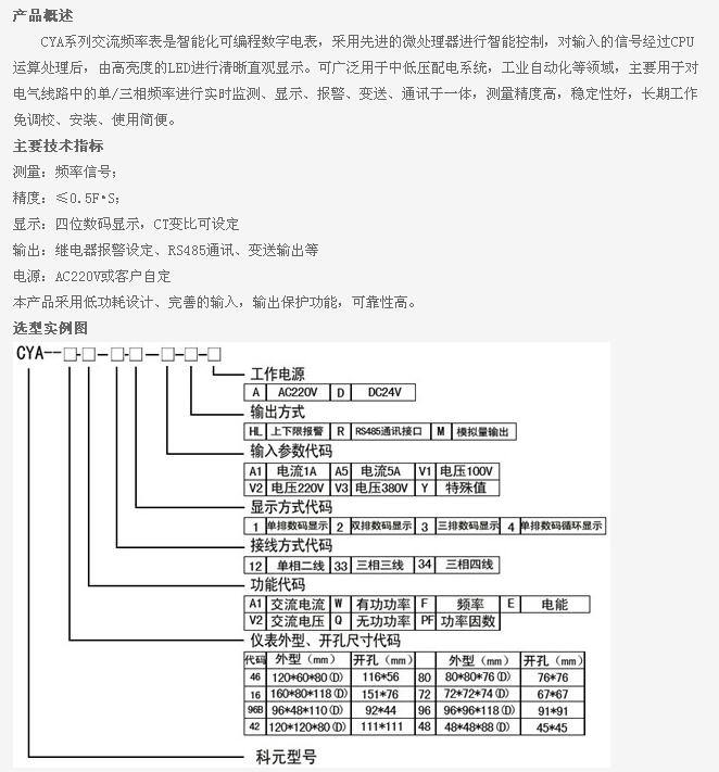 CYA-46-F,CYA-16-F,CYA-96B-F,CYA-42-F,CYA-80-F,CYA-72-F,CYA-96-F,CYA-48-F,CYA,交流頻率表 |