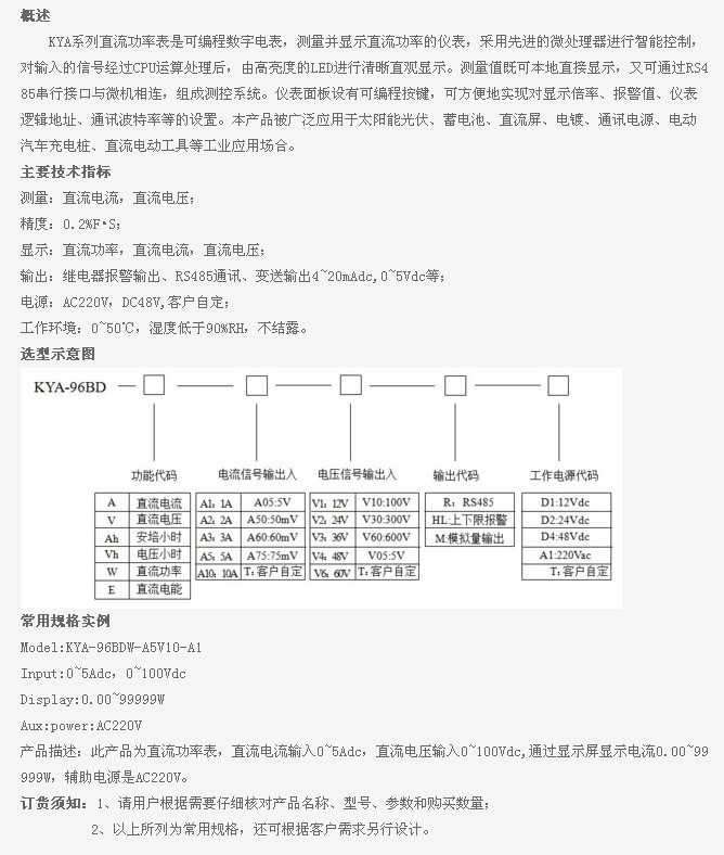 KYA-96BDW-A1,KYA-96BDW-A2,KYA-96BDW-A3,KYA-96BDW-A5,KYA-96BDW-A5V10-A1,KYA,直流功率表