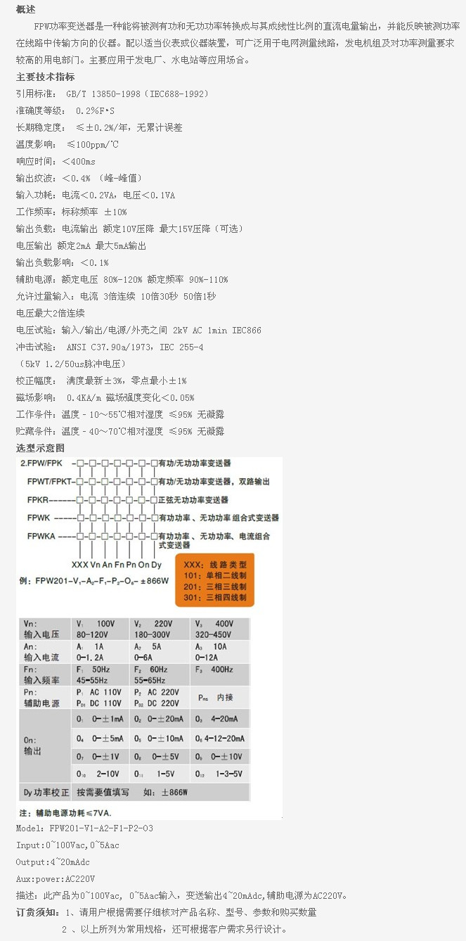 FPW101,FPW201,FPW301,FPW201-V1-A2-F1-P2-O3,FPW,功率變送器