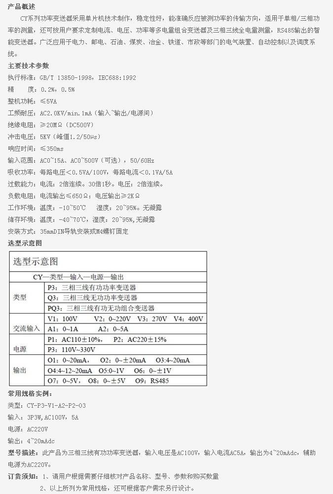 型號(hào): CY-P3,CY-Q3,CY-PQ3,CY-P3-V1-A1-P1-O1,CY-P3-V1-A2-P2-O3,CY-Q3-V2-A2-P1-O9,CY,功率變送器