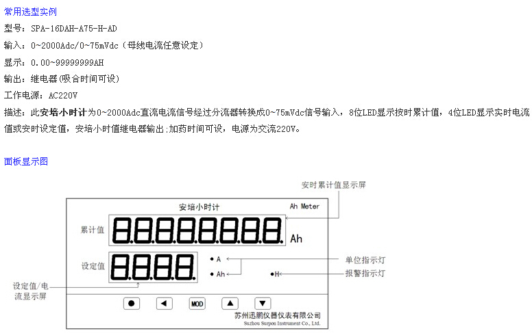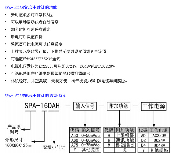 SPA-16DAH-A50,SPA-16DAH-A60,SPA-16DAH-A75,SPA-16DAH-Y,安培小時(shí)計(jì)