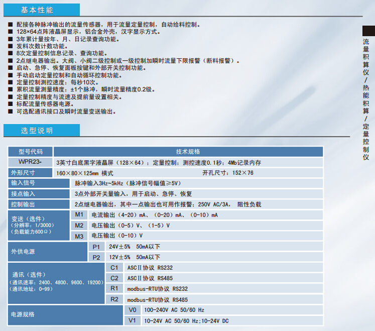 WPR23-M1,WPR23-M2,WPR23-M3,WPR23定量控制儀