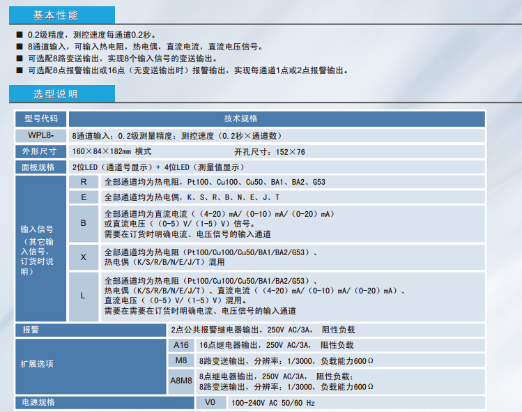 WPL8-R,WPL8-E,WPL8-B,WPL8-X,WPL8-L,溫度巡檢儀