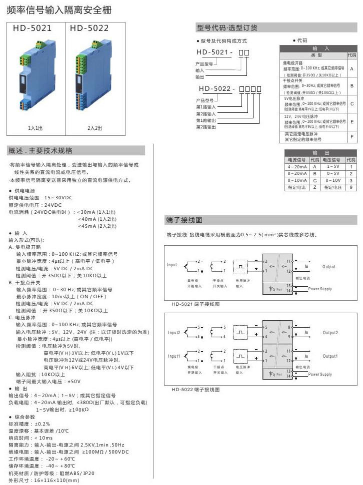 HD-5021,HD-5022,頻率信號輸入隔離安全柵