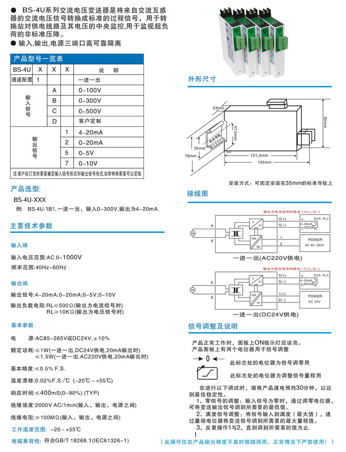 BS-4U-1A1,BS-4U-1A2,BS-4U-1A5,BS-4U-1C1,BS-4U-1C2,BS-4U-1D5,BS-4U-1D7,BS-4U,交流電壓變送器