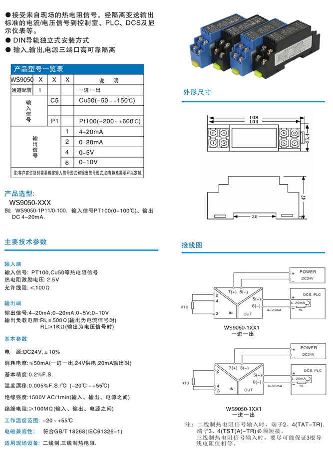 WS9050-1C51,WS9050-1C51,WS9050-1C52,WS9050-1P14,WS9050-1P16,WS9050,熱電阻信號(hào)隔離器