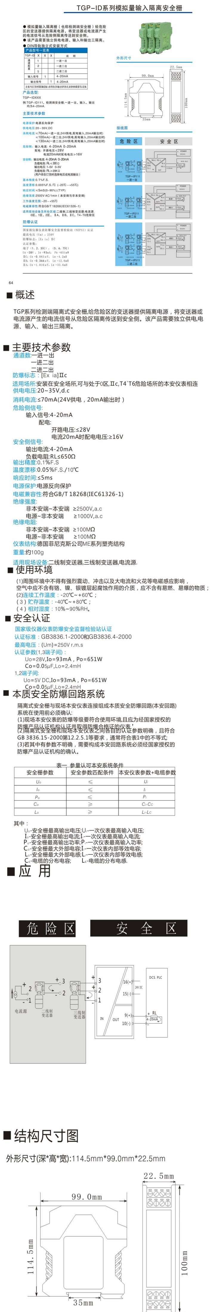 TGP-ID111,TGP-ID211,TGP-ID511,TGP-ID,模擬量輸入隔離安全柵