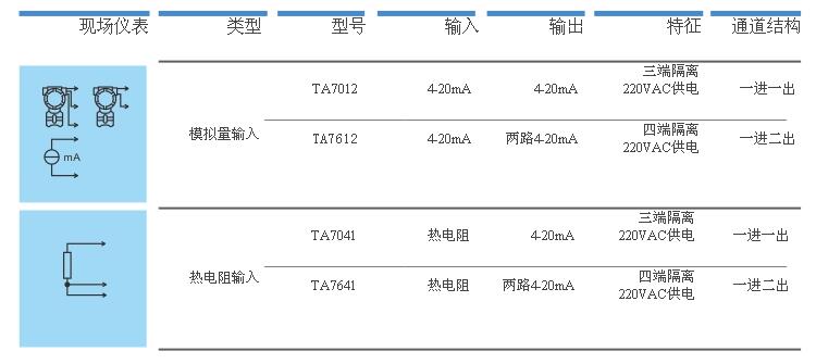 TA7012,TA7612,TA7041,TA7641,TA7000,交流供電型信號(hào)隔離器