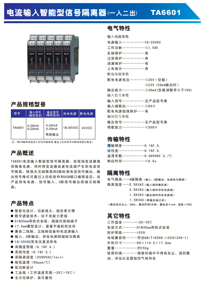 TA6601,電流輸入智能型信號隔離器(一入二出)