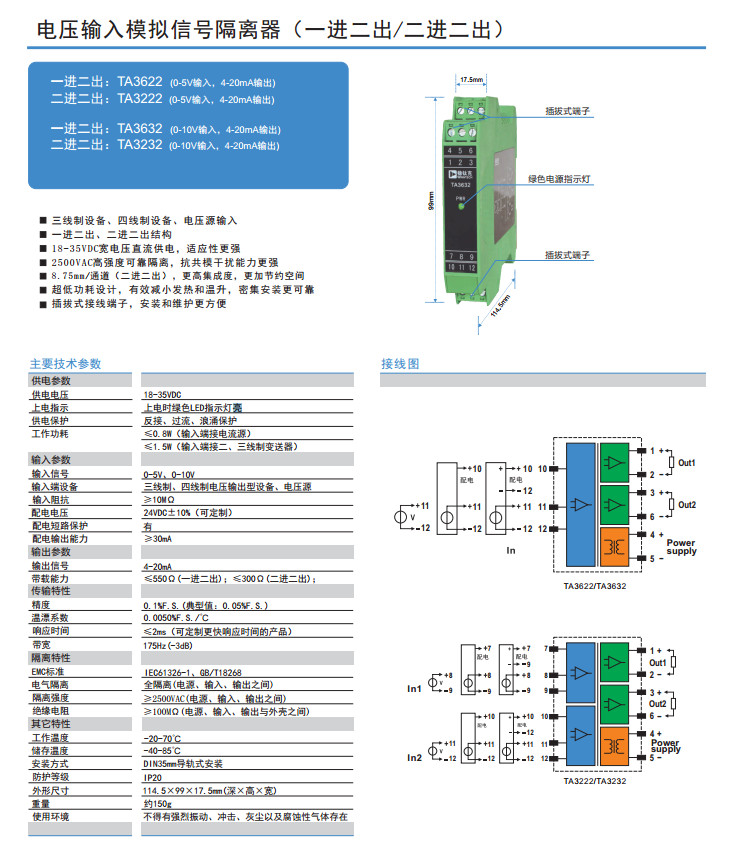 TA3622,TA3222,TA3632,TA3232,電壓輸入模擬信號(hào)隔離器