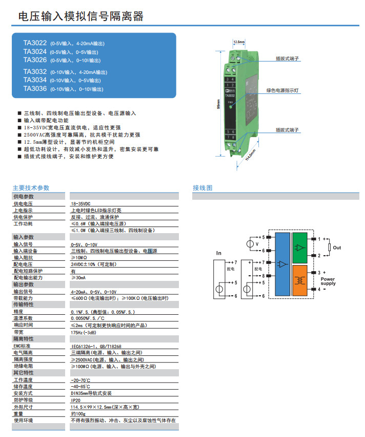 TA3022,TA3024,TA3026,TA3032,TA3034,TA3036,電壓輸入模擬信號(hào)隔離器