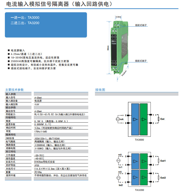TA3000,TA3200,電流輸入模擬信號隔離器