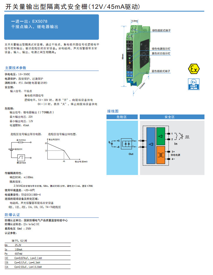 EX5078,開關(guān)量輸出型隔離式安全柵