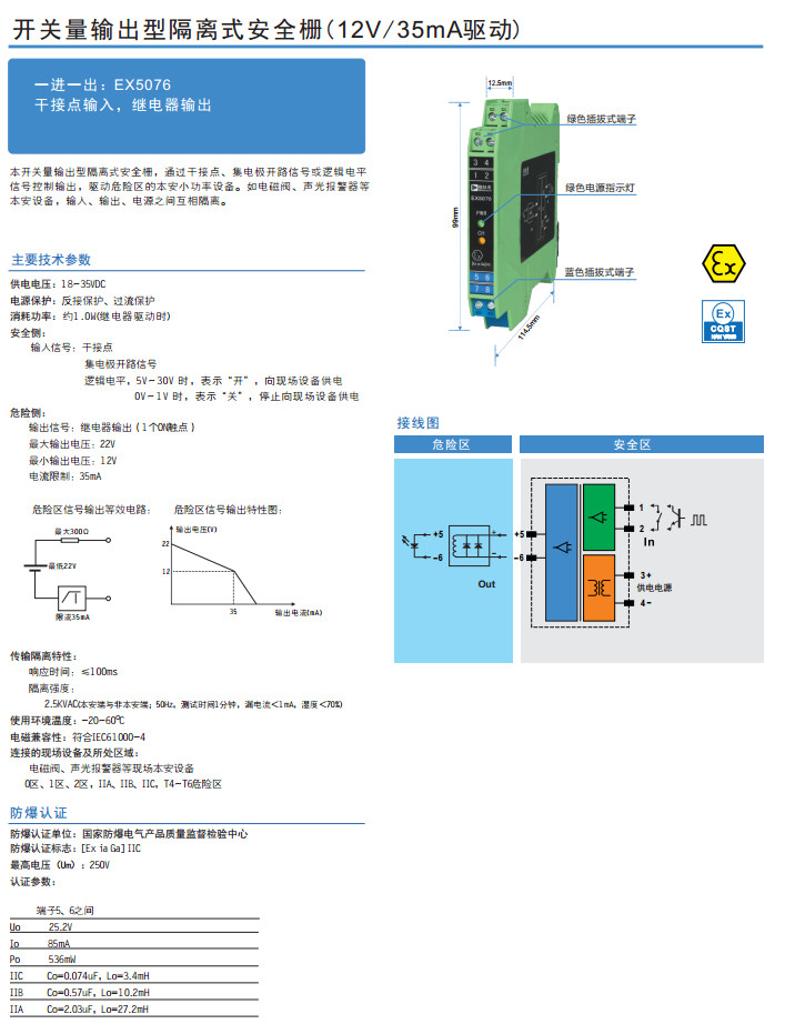 EX5076,開(kāi)關(guān)量輸出型隔離式安全柵
