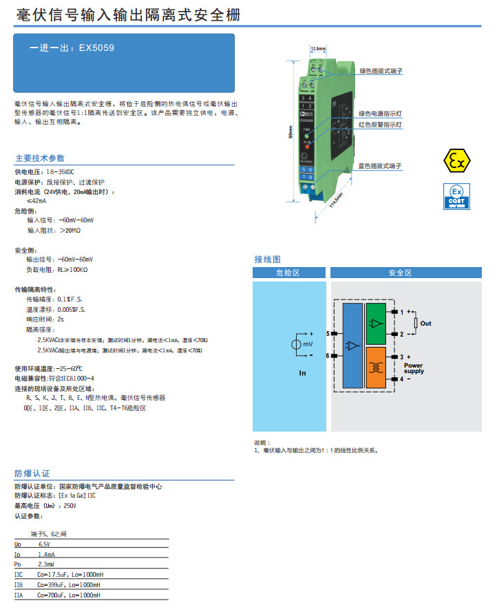 EX5059,毫伏信號(hào)輸入輸出隔離式安全柵