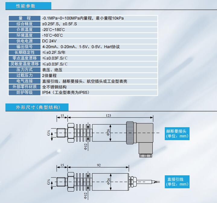 ■壓力敏感核心采用了高性能的硅壓阻式壓力充油芯體