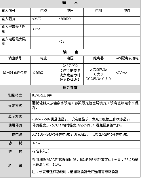 支持RS485、RS232串行接口,采用標(biāo)準(zhǔn)MODBUS RTU通訊協(xié)議 |
