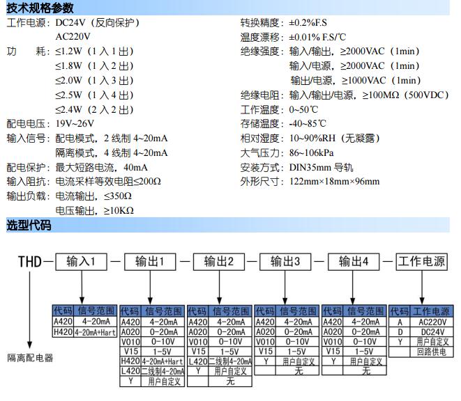 TH系列隔離配電器(一進(jìn)一出,一進(jìn)二出,一進(jìn)三出,一進(jìn)四出,二進(jìn)二出)給現(xiàn)場的二線制、三線制變送器提供隔離的工作電源,同時將變送器產(chǎn)生的4-20mA信號隔離輸出。該產(chǎn)品需要獨立供電,電源、輸入、輸出三端隔離。
