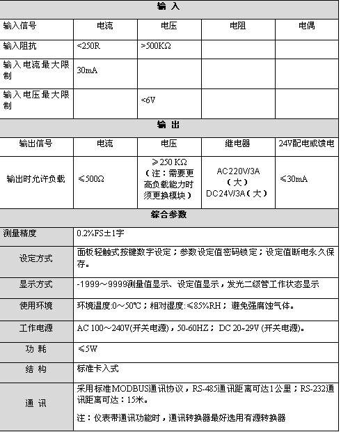 支持RS485、RS232串行接口,采用標準MODBUS RTU通訊協(xié)議 |