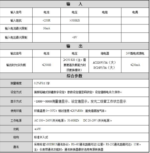 支持RS485、RS232串行接口,采用標(biāo)準(zhǔn)MODBUS RTU通訊協(xié)議 |