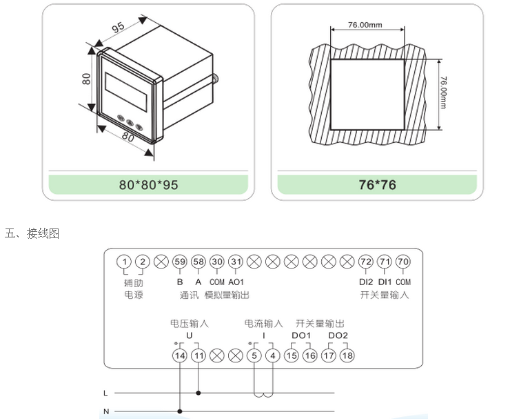 擴(kuò)展:AC5A以上需配電流互感器,AC500V以上需配電壓互感器,現(xiàn)場(chǎng)可編程設(shè)置輸入?yún)?shù)變比。