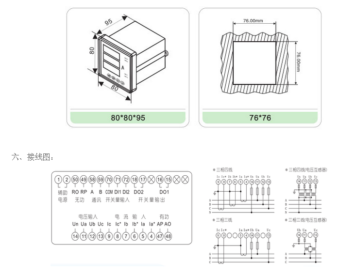 MT-B140S系列三相智能電測(cè)表是一種可設(shè)置CT和PT變比,具有模擬量變送輸出、繼電器輸出等功能,配備RS485通訊接口的智能系列儀表。可用于測(cè)量三相回路中的電流參數(shù)值。該系列產(chǎn)品以安裝簡(jiǎn)便,操作簡(jiǎn)潔、準(zhǔn)確度高特點(diǎn),主要替代了目前用于400V低壓柜中的指針式儀表、電量變送器等測(cè)量、顯示、變送裝置。