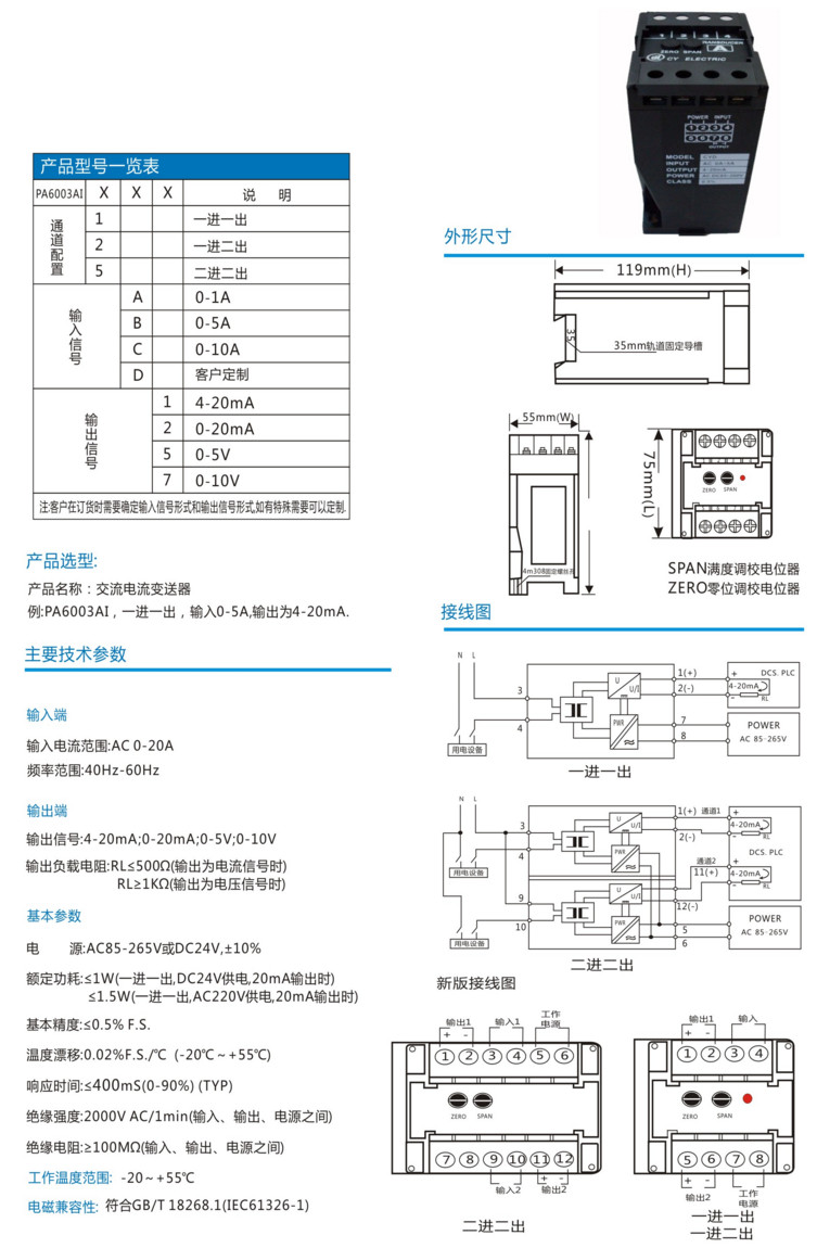 PA6003AI1A1,PA6003AI1C2,PA6003AI2B7,PA6003AI2C5,PA6003AI5D7,PA6003AI,交流電流變送器
