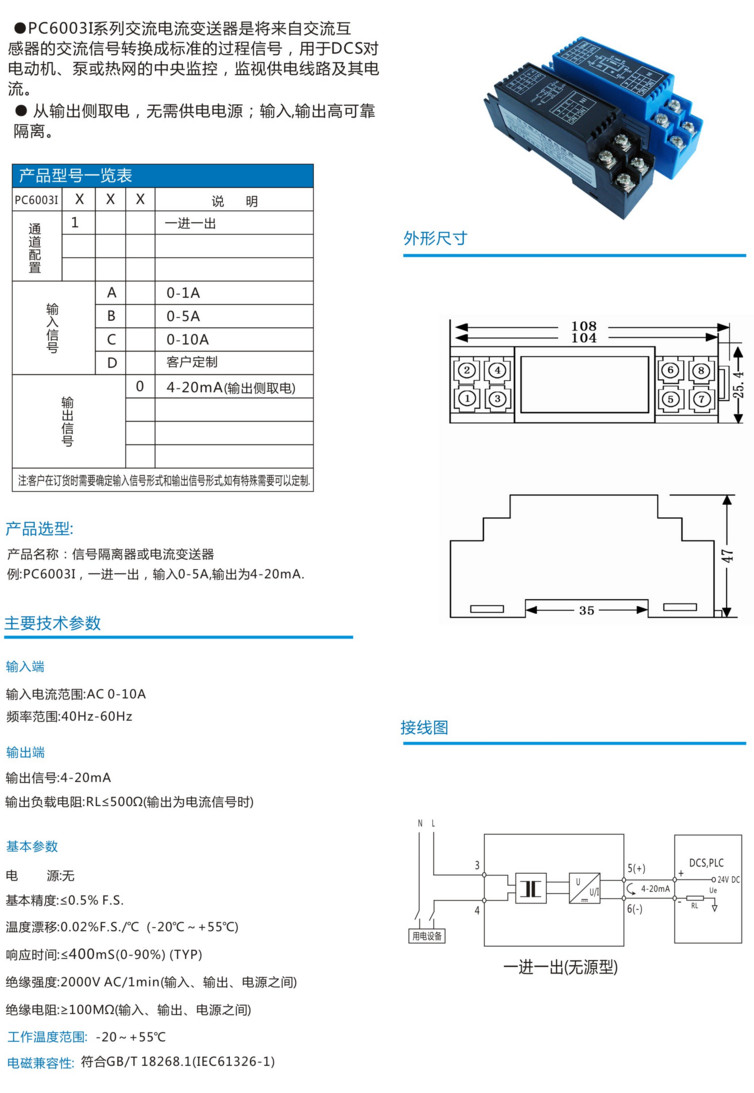 PC6003I1A,PC6003I1B,PC6003I1C,PC6003I1D,PC6003I,無源電流信號隔離配電器