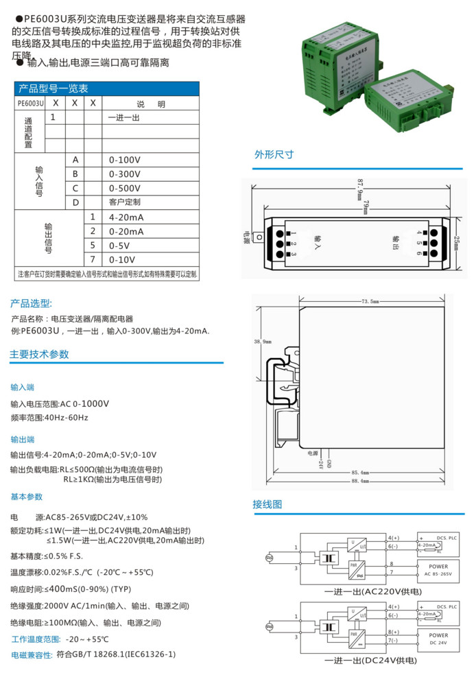 PE6003U1A,PE6003U1B,PE6003U1C,PE6003U1D,PE6003U,交流電壓變送器
