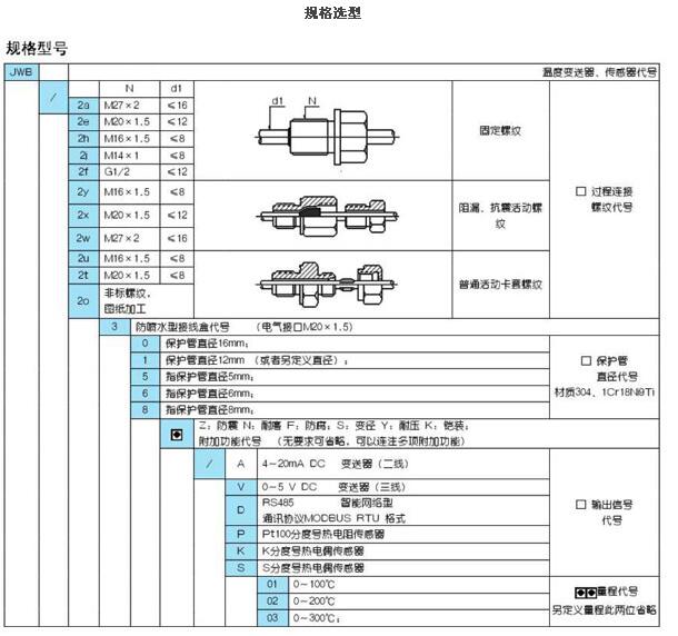 JWB/2a30,JWB/2e35,JWB/2f38,JWB/2a30/P,JWB/2a30/K,JWB/23,防水型螺紋式一體化溫度變送器