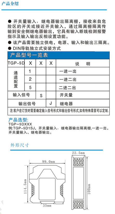TGP-SD1SJ,TGP-SD2SJ,TGP-SD5SJ,TGP-SD,開關(guān)量輸入安全柵