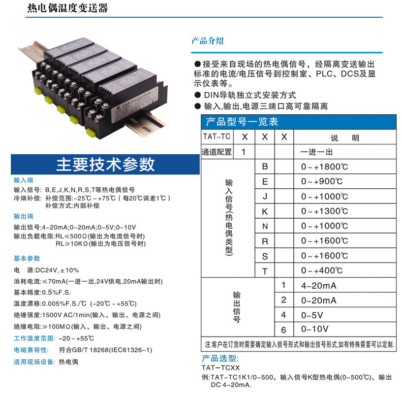 TAT-TC1B1,TAT-TC1B6,TAT-TC1E6,TAT-TC1E6,TAT-TC1R2,TAT-TC1T6,TAT-TC,熱電偶溫度變送器