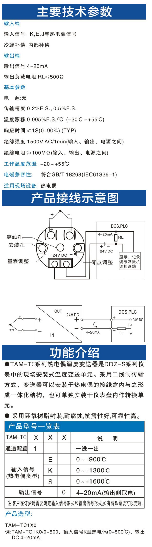 TAM-TC1E0,TAM-TC1K0,TAM-TC1S0,TAM-TC1K0/0-500,TAM-TC,熱電偶溫度變送器