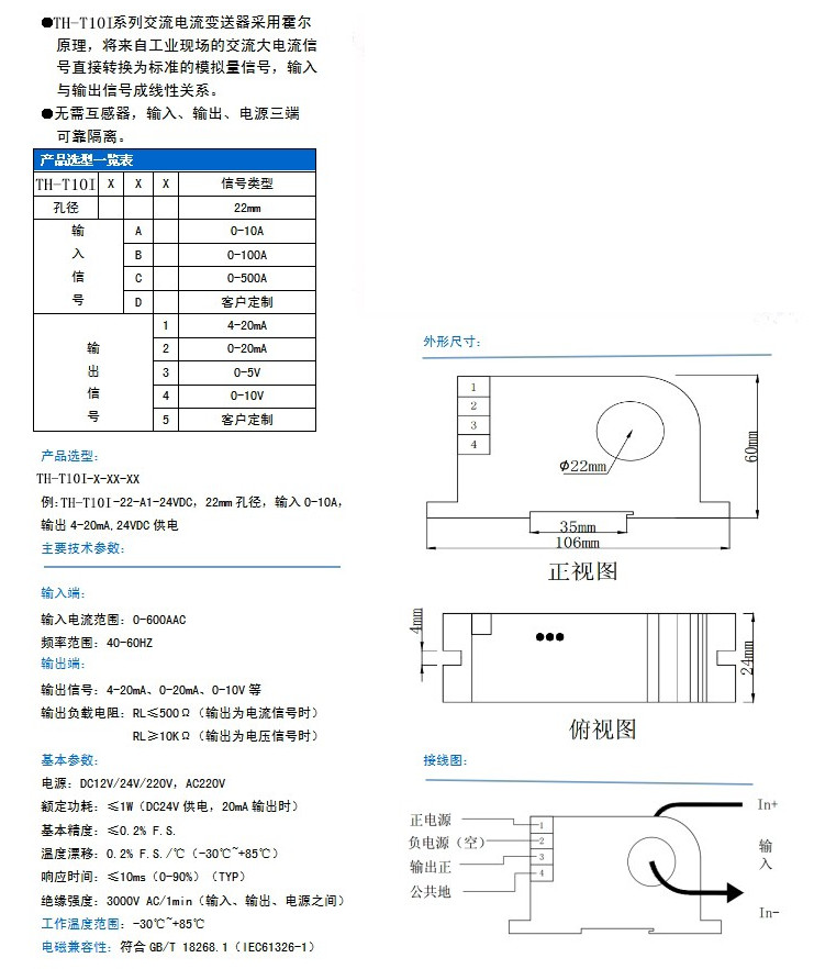TH-T10I-22-A1,TH-T10I-22-B2,TH-T10I-22-C3,TH-T10I-22-D5,TH-T10I,交流電流變送器