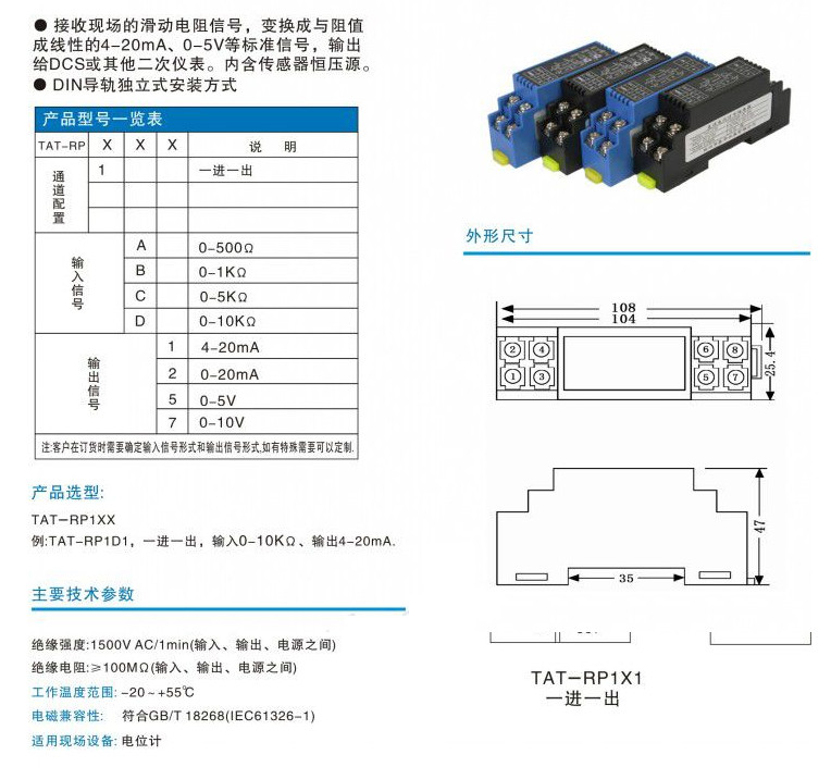 TAT-RP1A1,TAT-RP1A7,TAT-RP1B5,TAT-RP1C2,TAT-RP1D7,TAT-RP,電位計信號隔離器