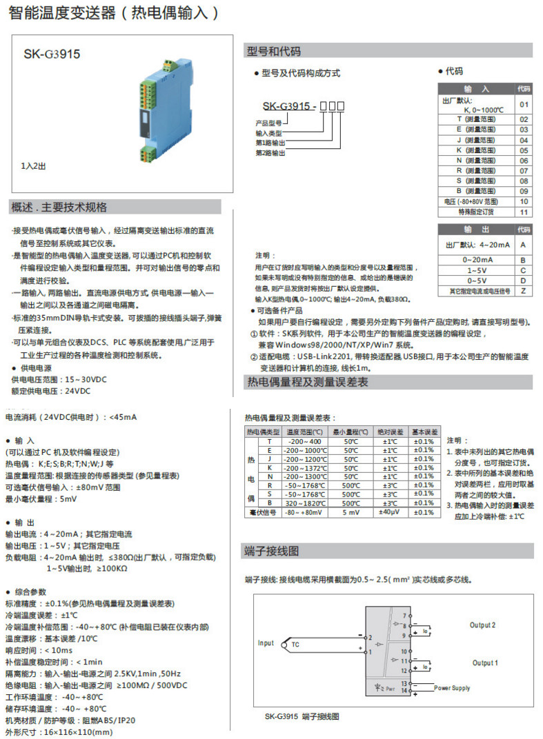 SK-G3915-01,SK-G3915-02,SK-G3915-03,SK-G3915-04,SK-G3915-05,SK-G3915,智能溫度變送器