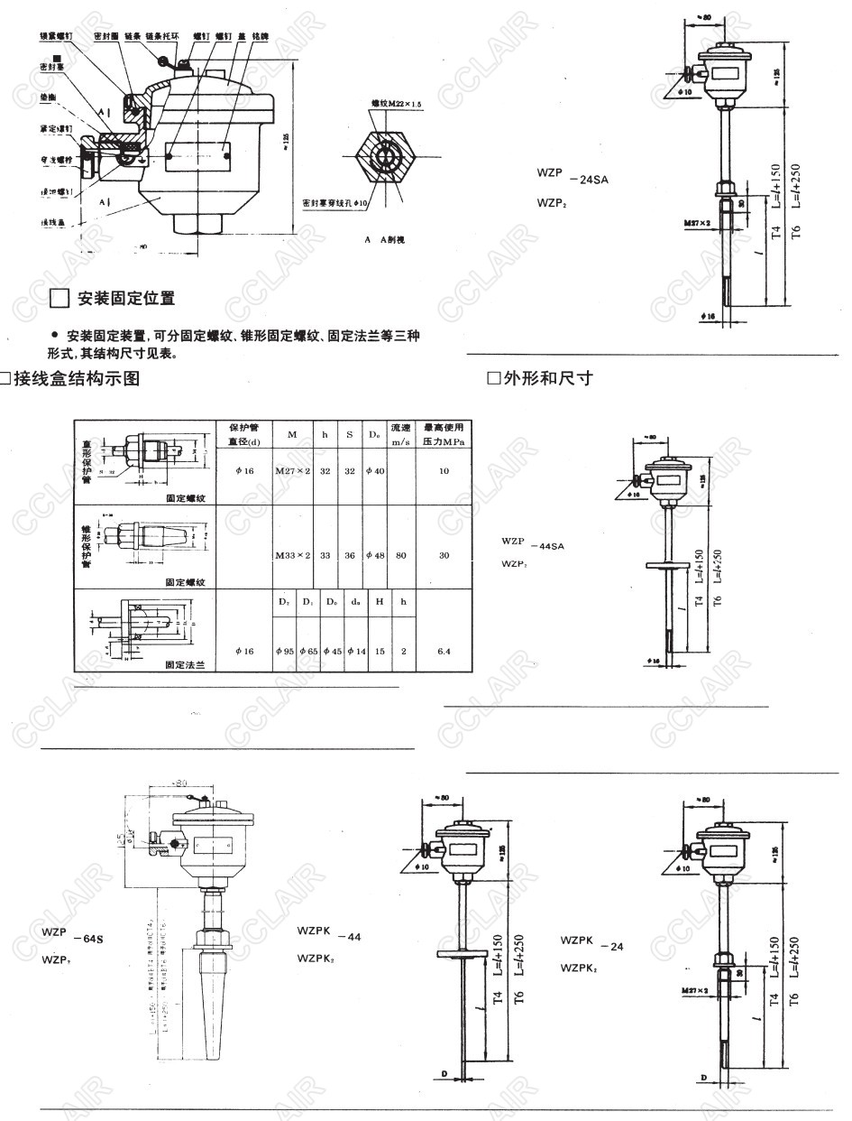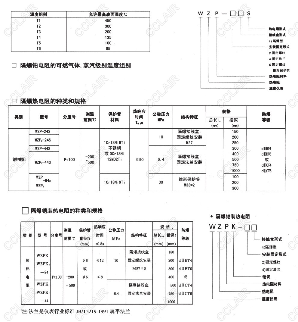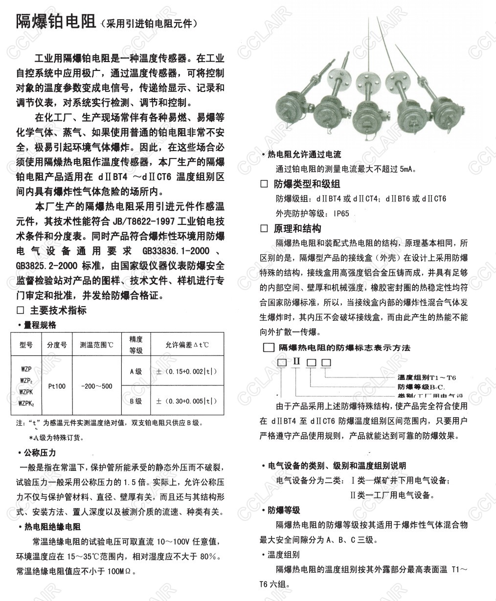 WZP-24S,WZP2-24S,WZP-44S,WZP2-44S,WZP-64S,WZP2-64S,WZPK-24,隔爆鉑電阻