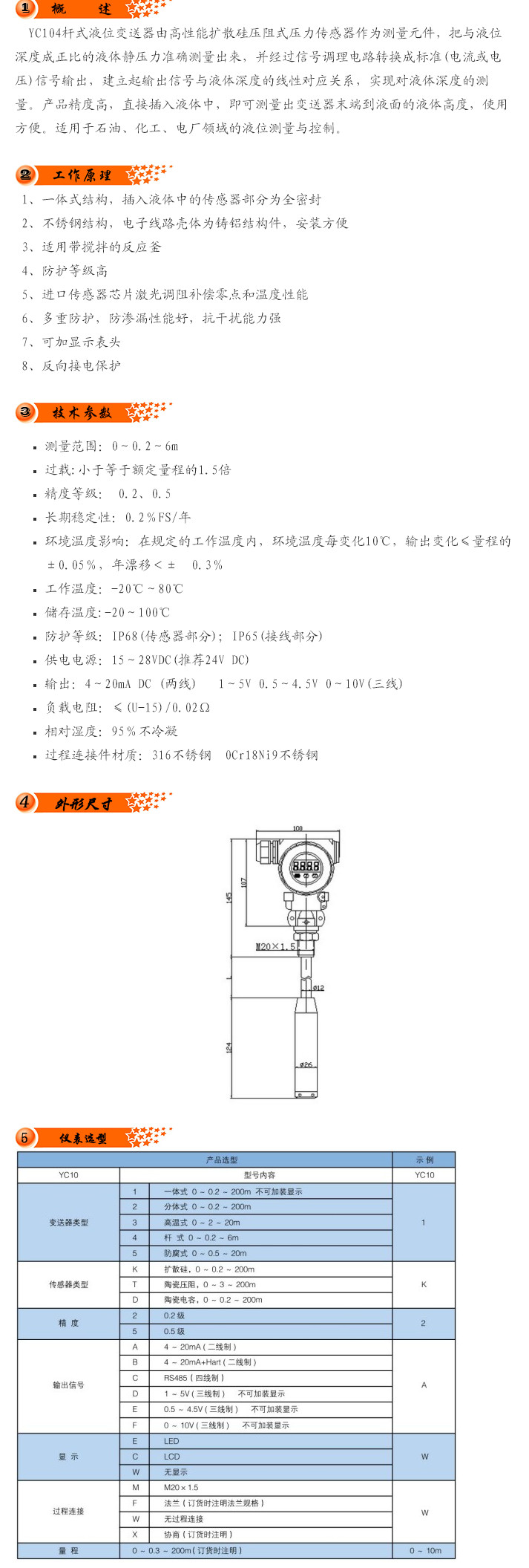YC104,桿式液位變送器