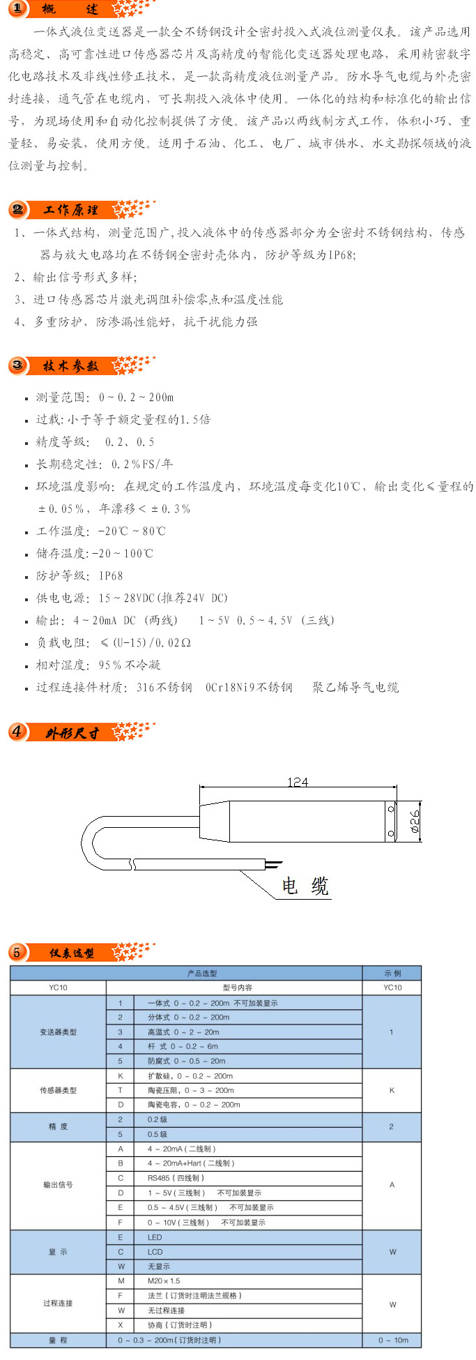YC101K,YC101T,YC101D,YC101,一體式液位變送器
