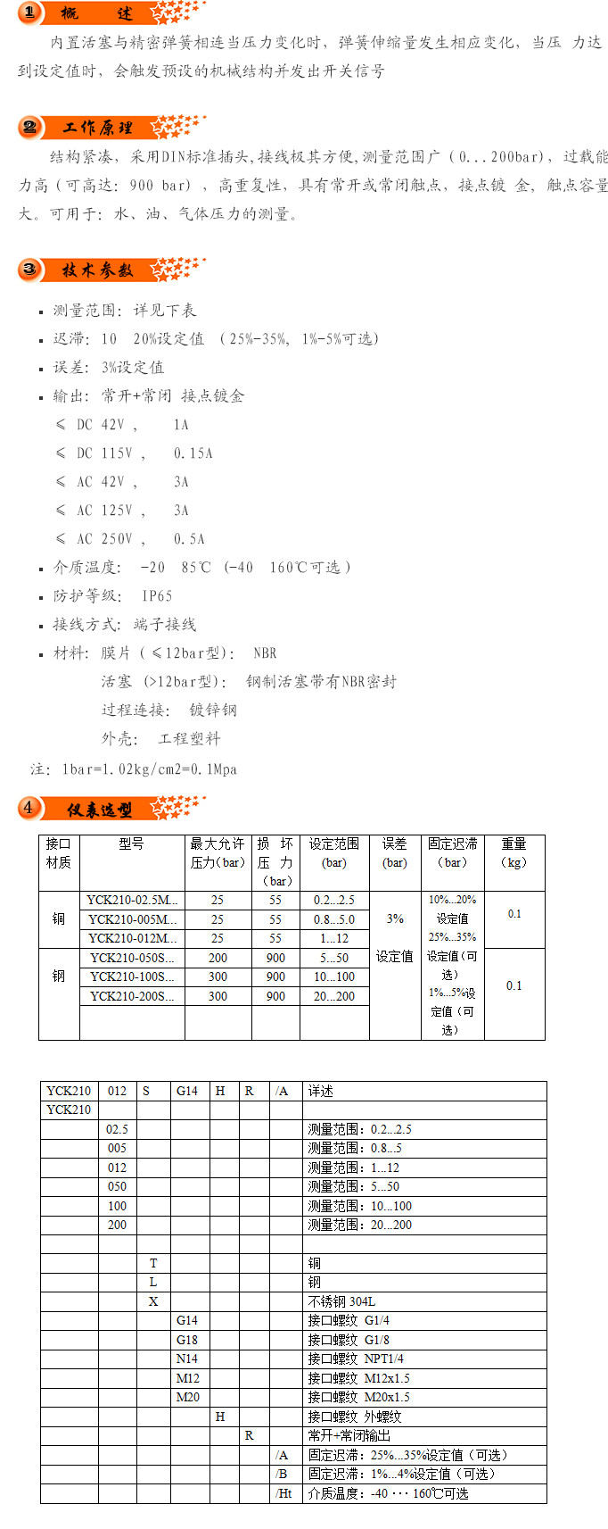 YCK210,機(jī)械壓力開(kāi)關(guān)